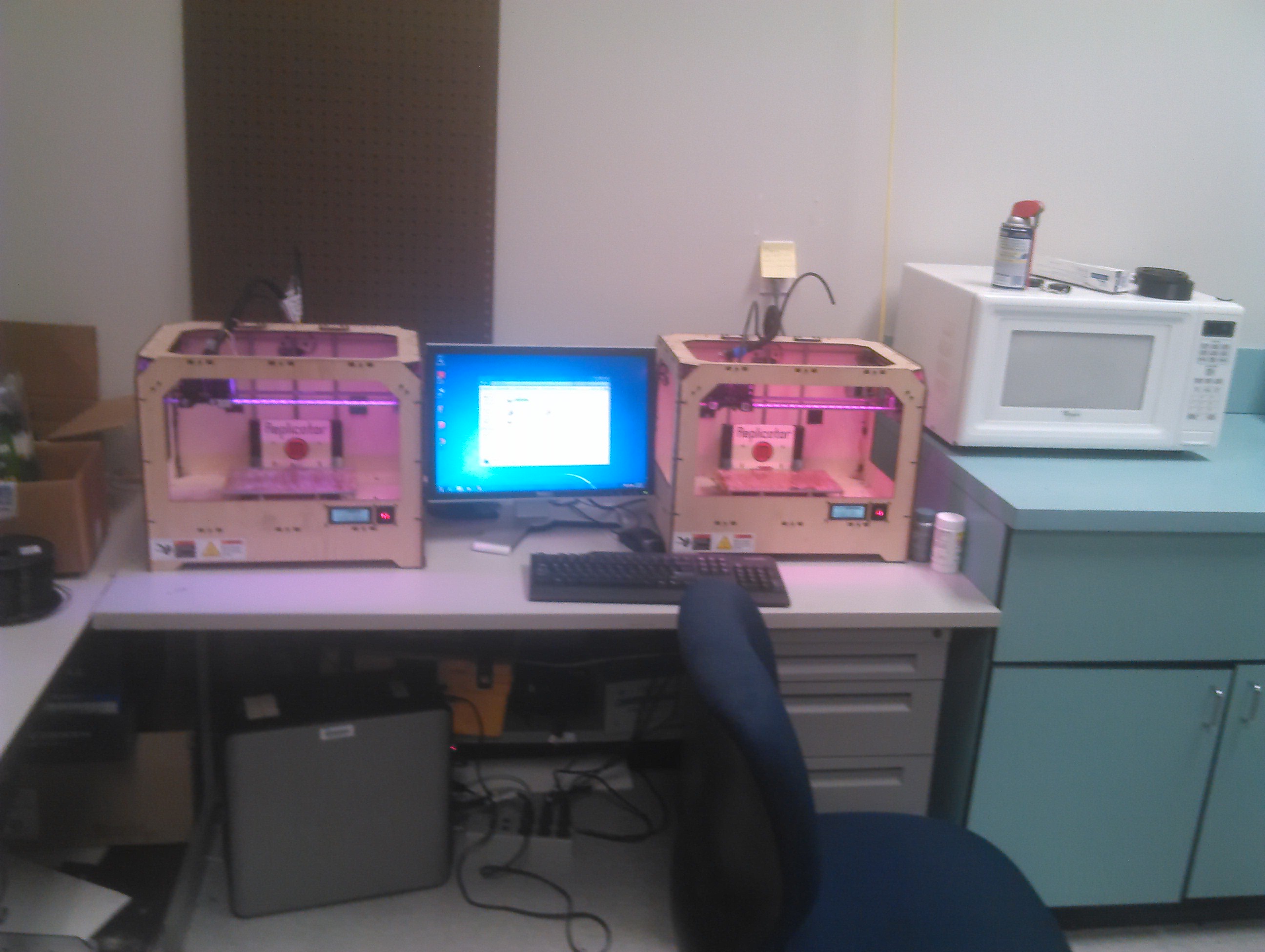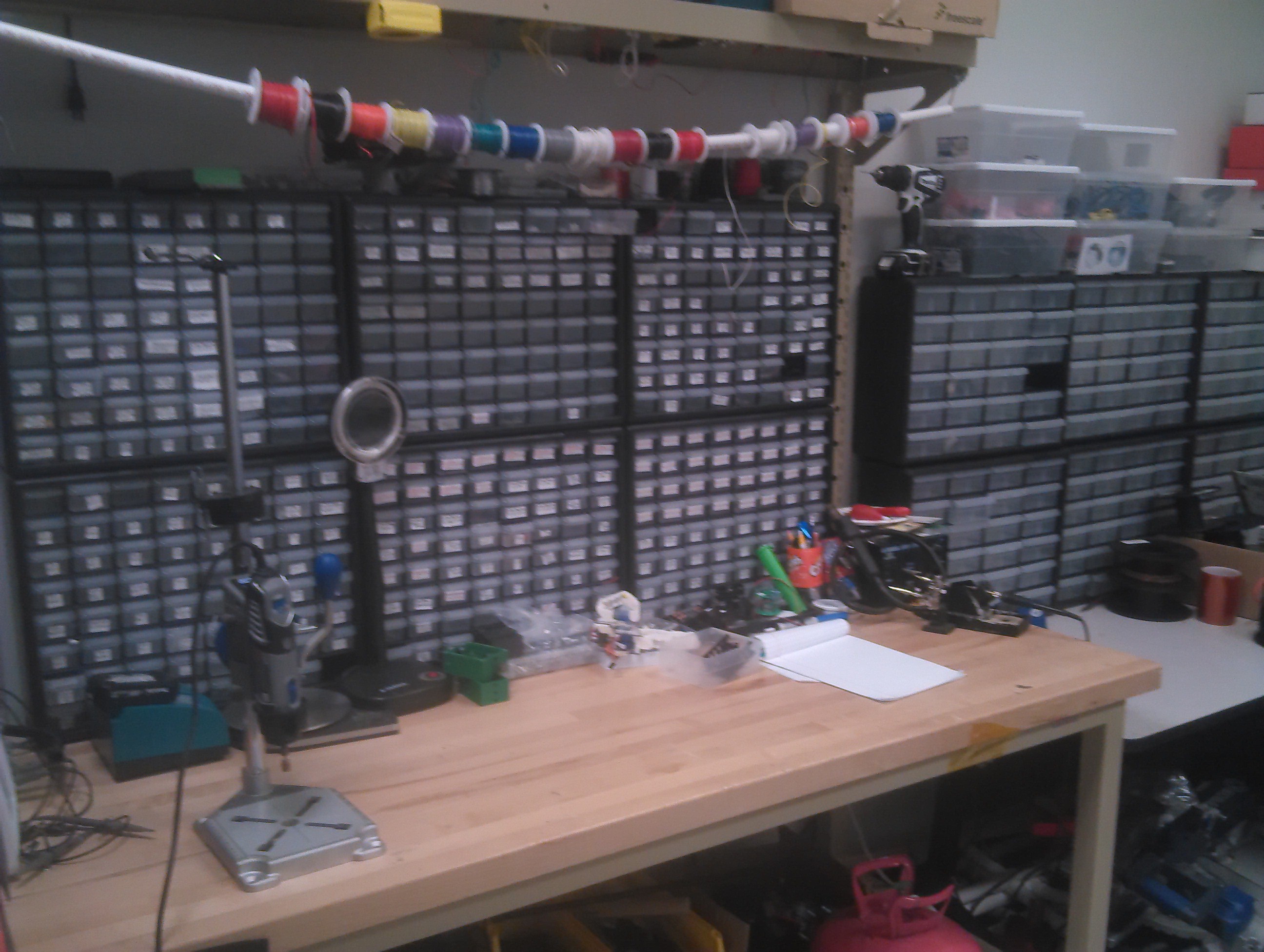 Here in the Machine Room we develop the hardware for our projects. We have many components properly arranged within labeled containers for easy access. Most of our equipment is kept and used here. One of the most used machines here is the 3D printer, which is of great help when prototyping new parts for our projects. Some of the other tools include the soldering iron, drill and arrays of screwdrivers and drill bits.