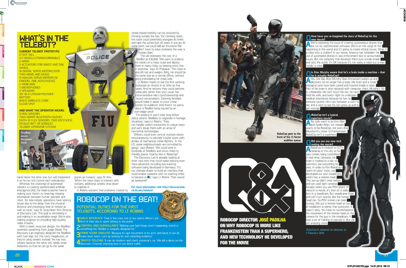 The Discovery Lab’s Telebot appeared as part of The Empire Magazine. The article was published with the premiere of the Robocop movie and was called “The real Robocop” by Comrad Emmett. They very much emphasize not only the similarities of Telebot and Robocop, but the differences that could allow the Telebot to be even more satisfying and productive for society, as is the fact that one person could control several Telebots all the around the country from the comfort of their homes. We are very proud to see our project being compared to this icon of american sci-fi and hope that gets us a step closer to placing the Telebot on the streets of the world.