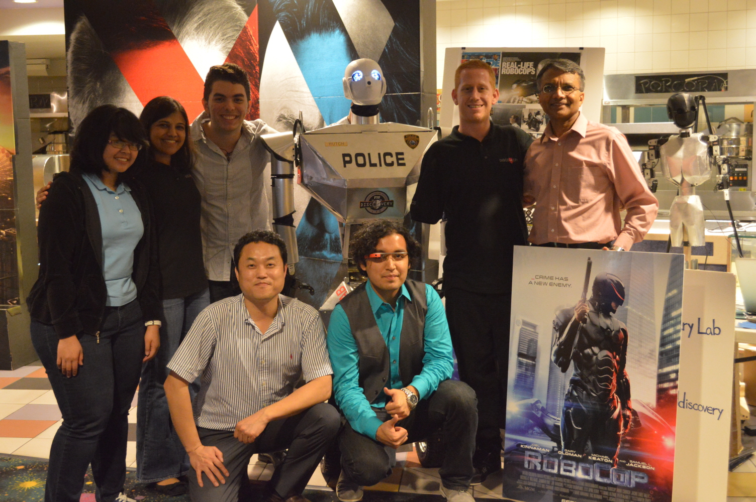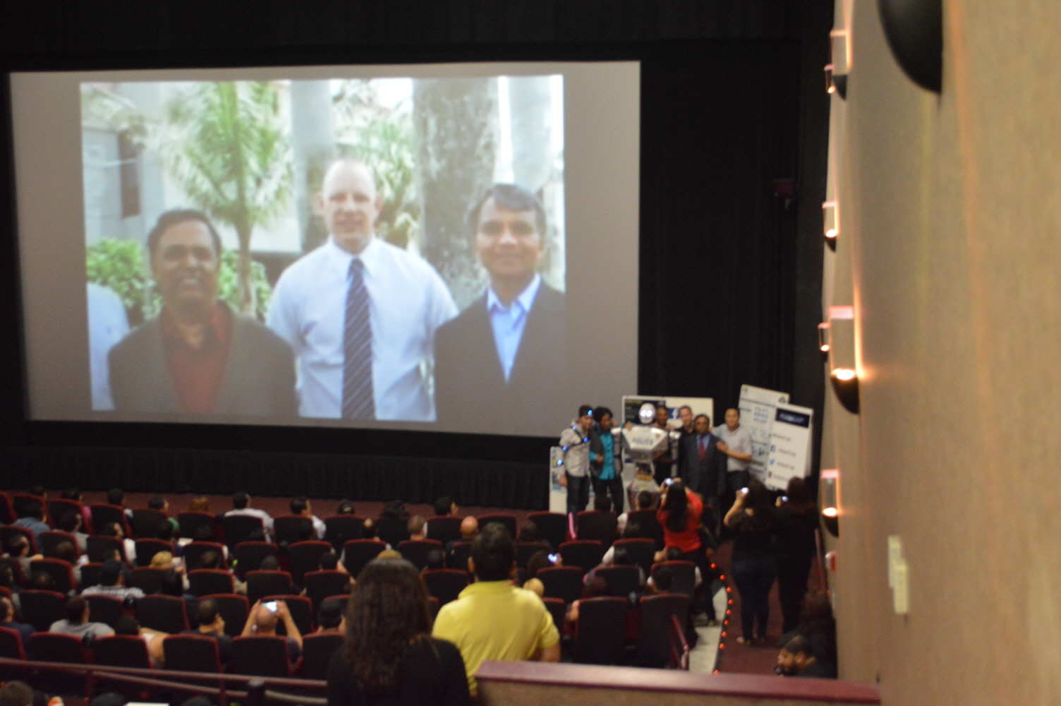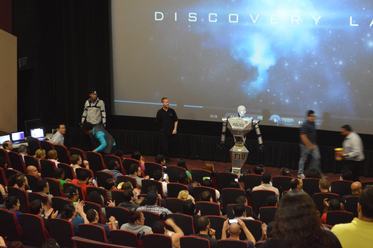 With the recent release of the RoboCop Movie, and it’s similarities to our Telebot, we had the fantastic opportunity to give a quick demo at the premier of the movie. We have to thank the Sonny Pictures associates for offering us this great opportunity. We made a small skit to show the capabilities of the Telebot and it possible future uses, as well as to entertain the audience. We gave them a bit of laugh when the Telebot stopped a trespasser from going too close to the screen. We hope to have more opportunities to show our work in similar events.