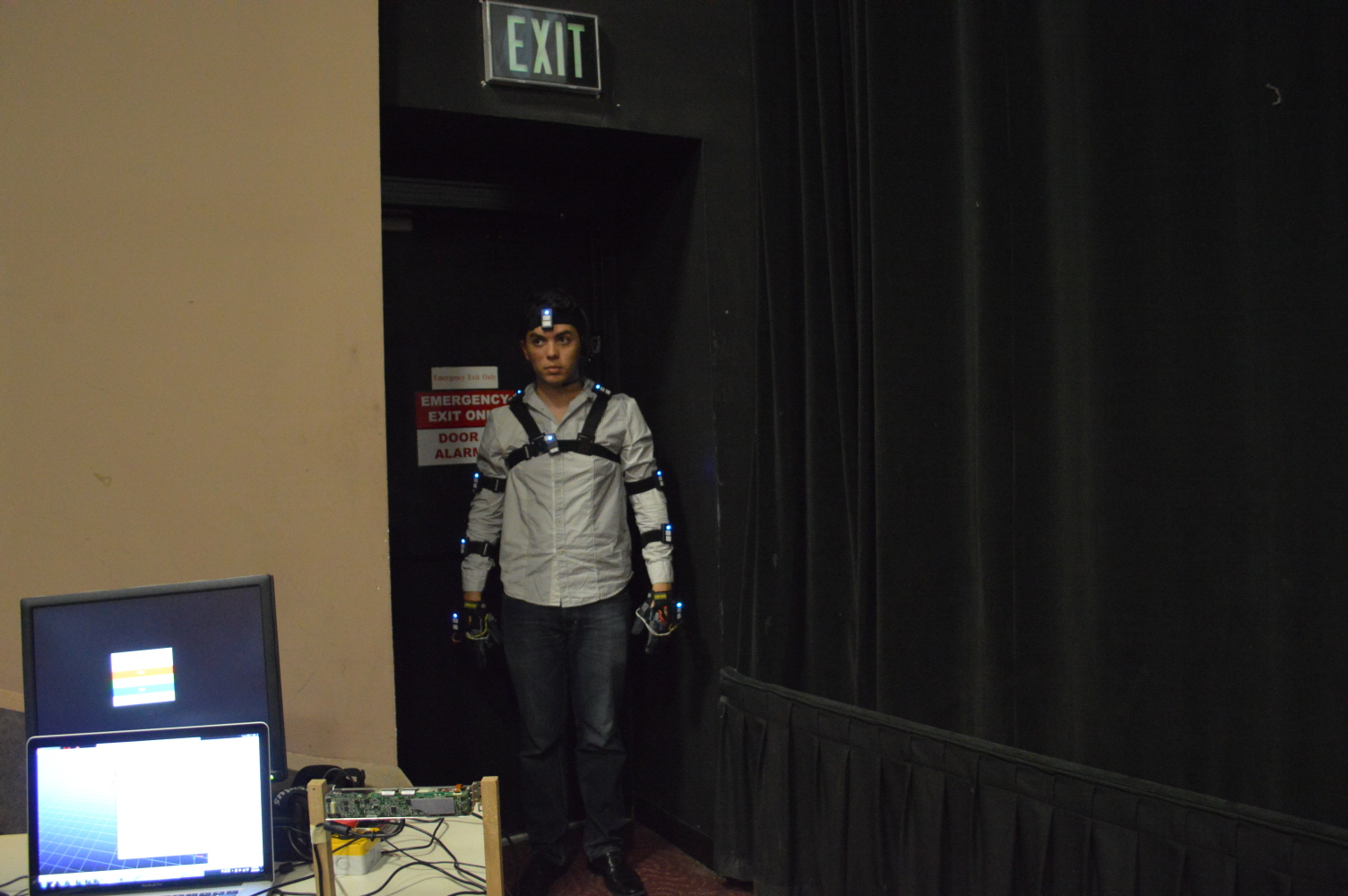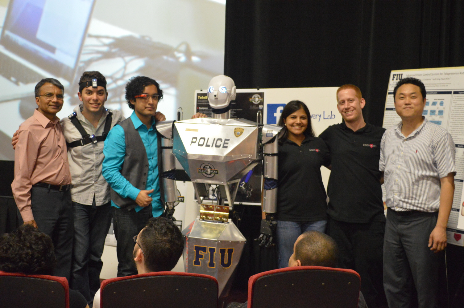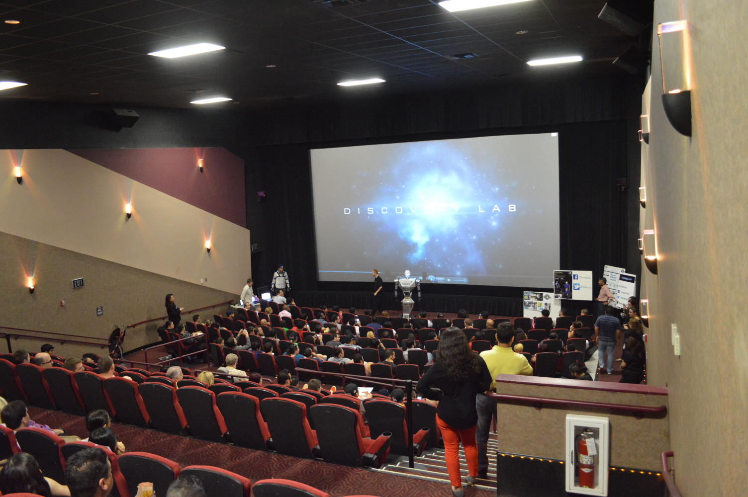 With the recent release of the RoboCop Movie, and it’s similarities to our Telebot, we had the fantastic opportunity to give a quick demo at the premier of the movie. We have to thank the Sonny Pictures associates for offering us this great opportunity. We made a small skit to show the capabilities of the Telebot and it possible future uses, as well as to entertain the audience. We gave them a bit of laugh when the Telebot stopped a trespasser from going too close to the screen. We hope to have more opportunities to show our work in similar events.