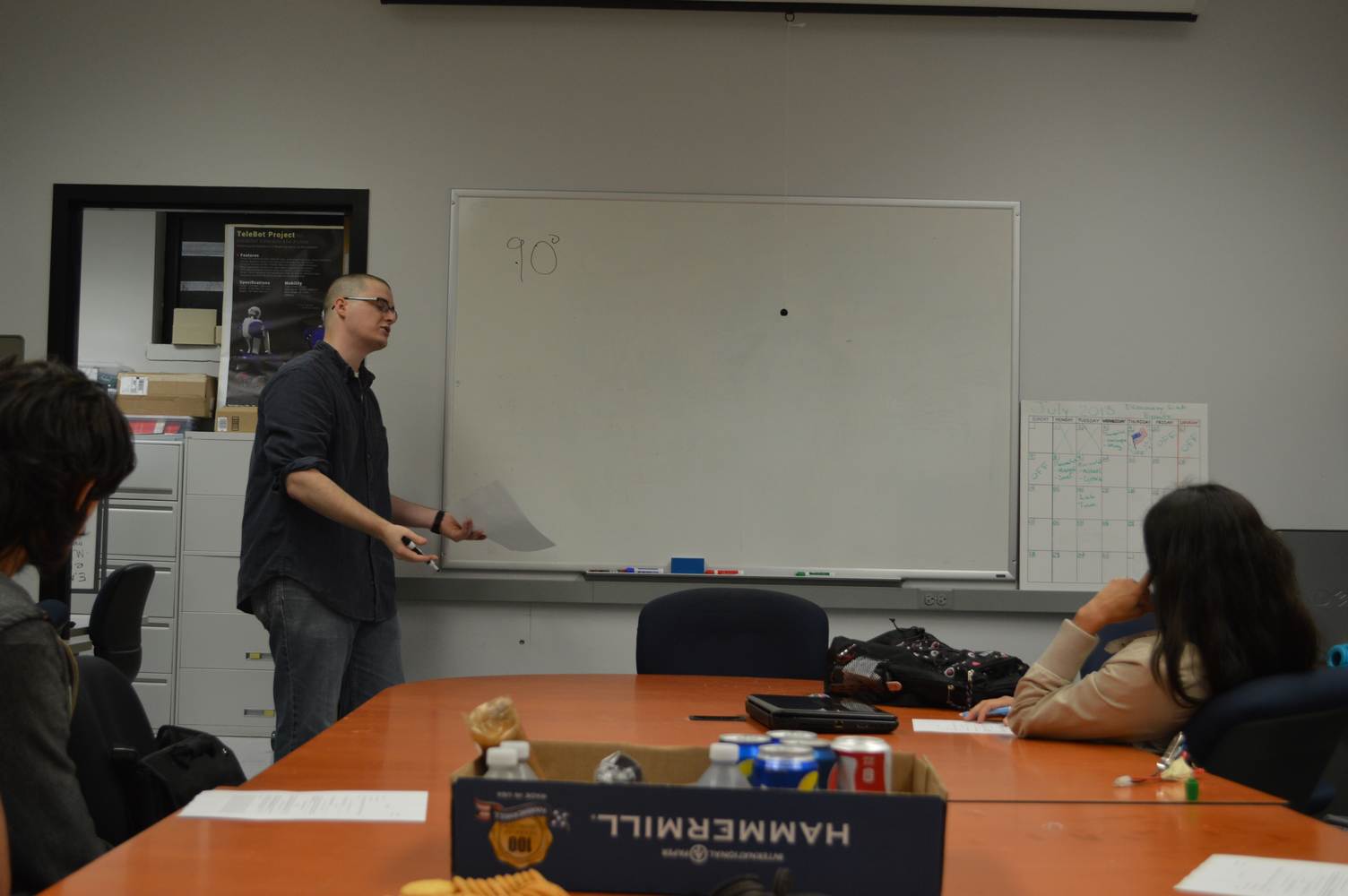 For the third day of Seminars, it was the turn of Michael Waddele and Irvin Cardenas to present their work. It started with Michael explaining the process of his adapted Kalman Filter for the Arms Motion team. He explained the detailed process and its recursive method while writing it on the whiteboard instead of showing it on a PowerPoint given the mathematical nature of his presentation. His presentation was followed by Irvin’s presentation on Vision Control. Irvin depicted the problems him and his team have worked to solve within the Vision Control system. He also went on to explain the basic Properties and Formulas of your average video and techniques on how to speed a video stream. There is only one presentation left for the next seminar, where Cynthia Tope will be talking about the Telebot interface and its databases.