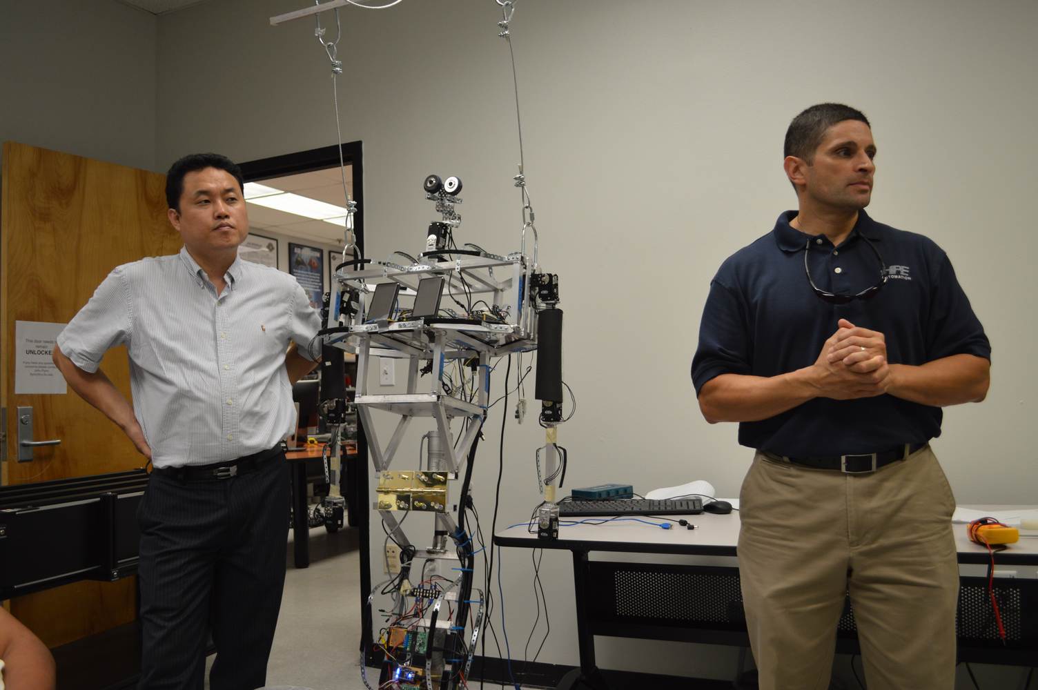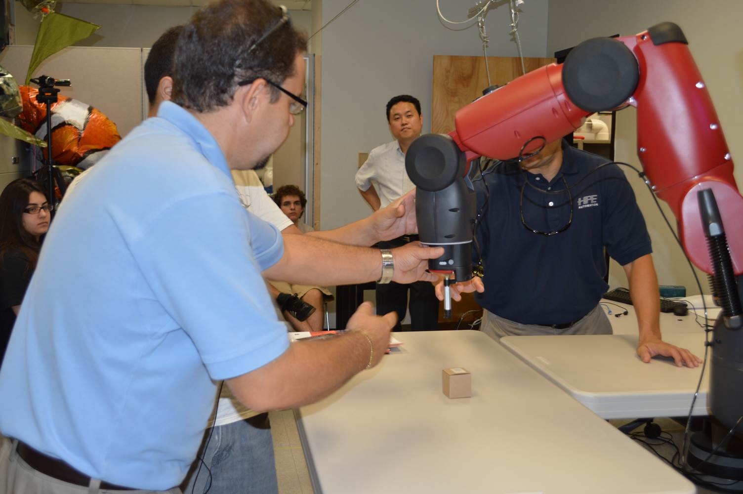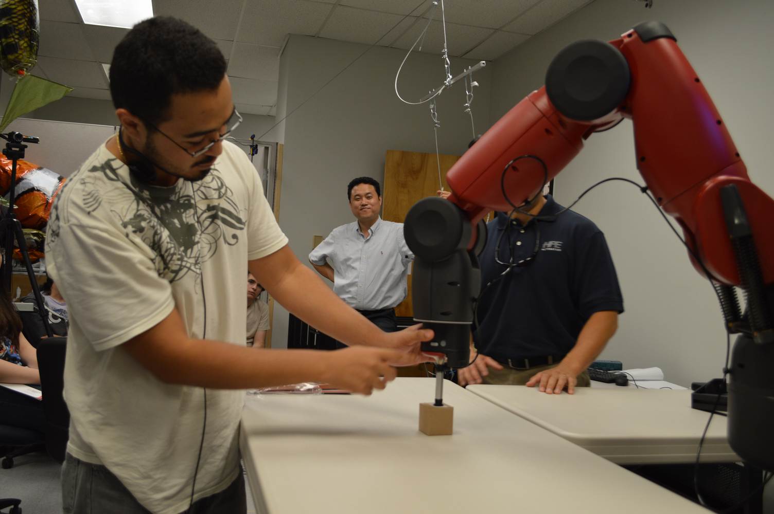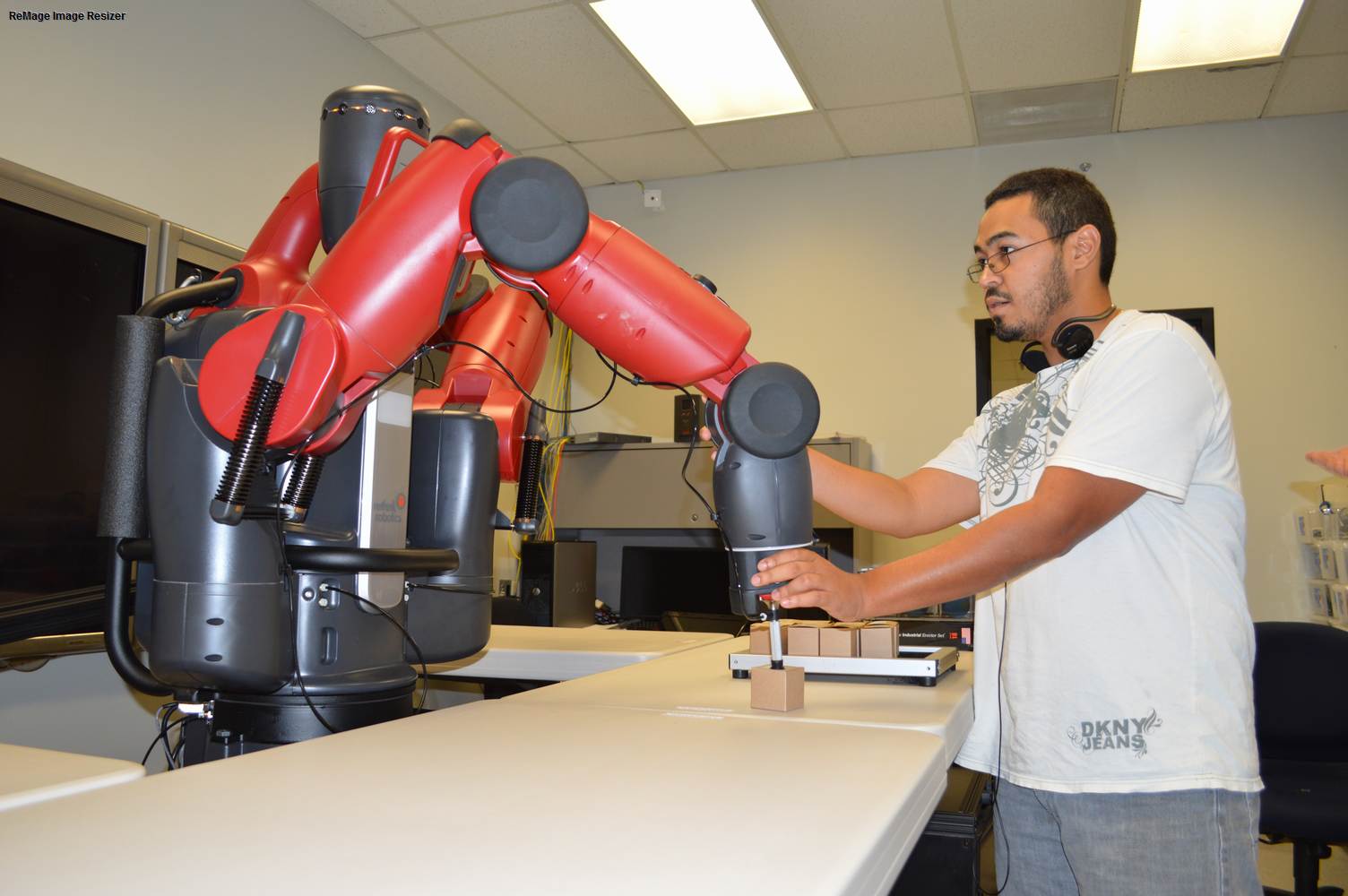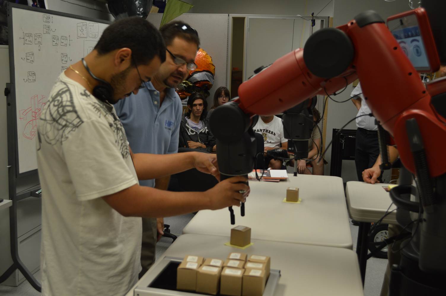 During last week, the Discovery Lab had a demonstration of Baxter, a robot by Rethink Robotics, meant to aid in industrial productions. The machine is a human sized robot, with two robotic arms with adaptable ends for different object sizes and shapes. It is incredibly easy to teach it new movements and has great versatility. Baxter has a ton of sensors for safety reasons that allow him to do things like sensing when a person is touching his arms and allow them to fully move them without resistance. He also has an ingenious interface where he nods or gives the user a confused look depending if he understood the commands or not. The Discovery Lab was considering to obtain one such machine for applications within the Telebot, but the end of that idea is still unclear. When all is placed into account, Baxter is a great improvement in the world of robotics.