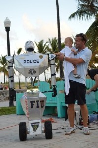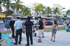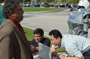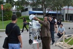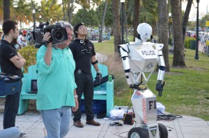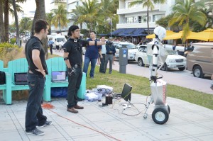 If you were at Miami Beach in Ocean Drive and the 12th Street yesterday November 17 during the afternoon, you probably saw us in black shirts setting up and demonstrating the Telebot there. This visit was part of a request by the Discovery Channel when they were getting footage of our main project, the Telebot. That day the Discovery Channel came with its crew to record footage of the project. They interviewed Dr Iyengard, Dr Kim, and Dr Prabakar for several hours and asked us to demonstrate the capabilities of the Telebot for the camera. Some of the demonstrations we gave them included traffic control in one of the inner street of FIU main campus and a bit of the reaction of the public to its capabilities (the Miami Beach visit). They were very please with the results even thought a few technical difficulties prevented us from demonstrating the Telebot further. These difficulties arouse from the fact that it was our first test outside on the streets with full mobility and that the crew had a limited amount of time available, hence we were unable to quickly amend the problems. Even so, the shooting was a great success and we are hoping that our edited footage will be aired soon on national TV. We are very eager to hear from them again.