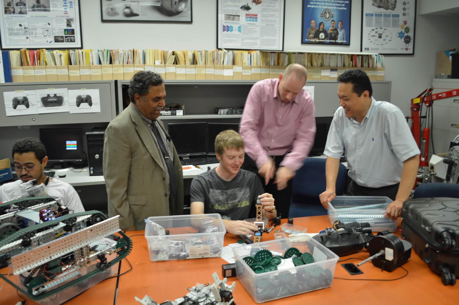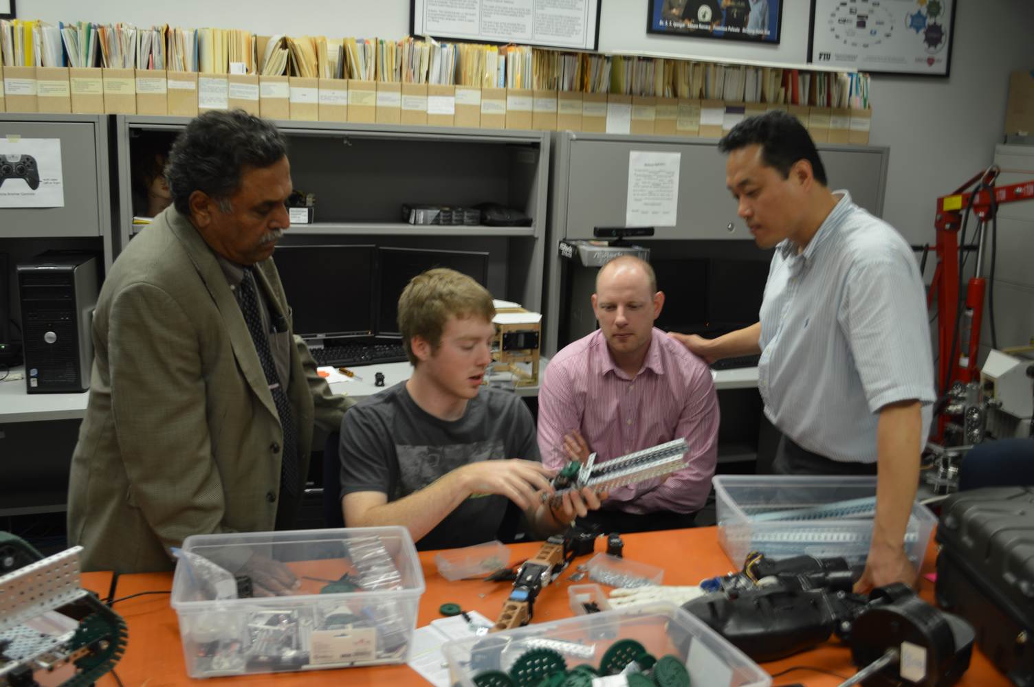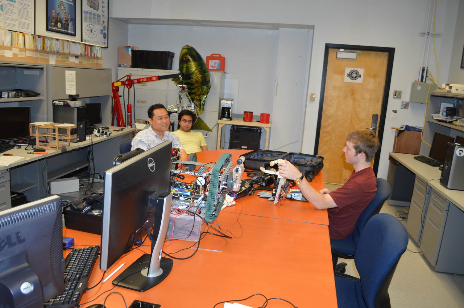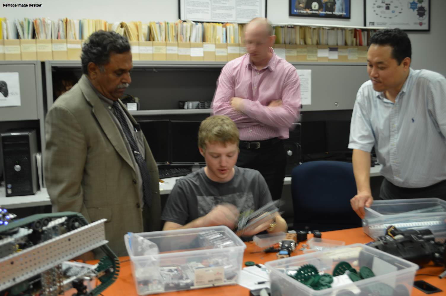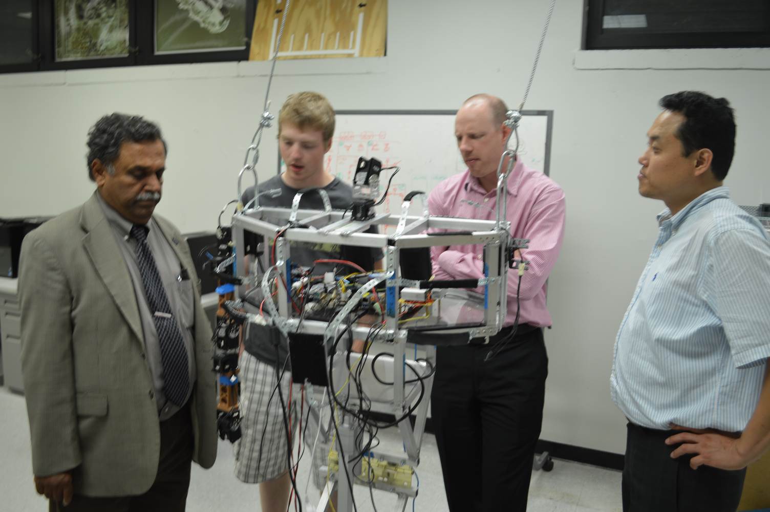 The Discovery Lab had the pleasure of having Easton LaChappelle working with us here at the lab for a week. Easton LaChappelle is a High School student from Colorado who has quite some experience in the field of animatronics. He had the opportunity to show his research to president Obama in the third annual White House Science Fair. His arm control designs are very ingenious and his understanding of robotics helped us further our own research. Easton had just returned from an internship at NASA when he came to the Discovery Lab. He had been working on the mechanical design of a teleoperated robotic arm, which is part of the work we do here at the Discovery Lab. Even after such a trip, he was amazed with our work on the Telebot, and was eager to help us. Althought short, his visit to the Discovery Lab gave us a different perspective on the idea of robotic Telepresence and provided us with inspiration for the future of the Telebot.