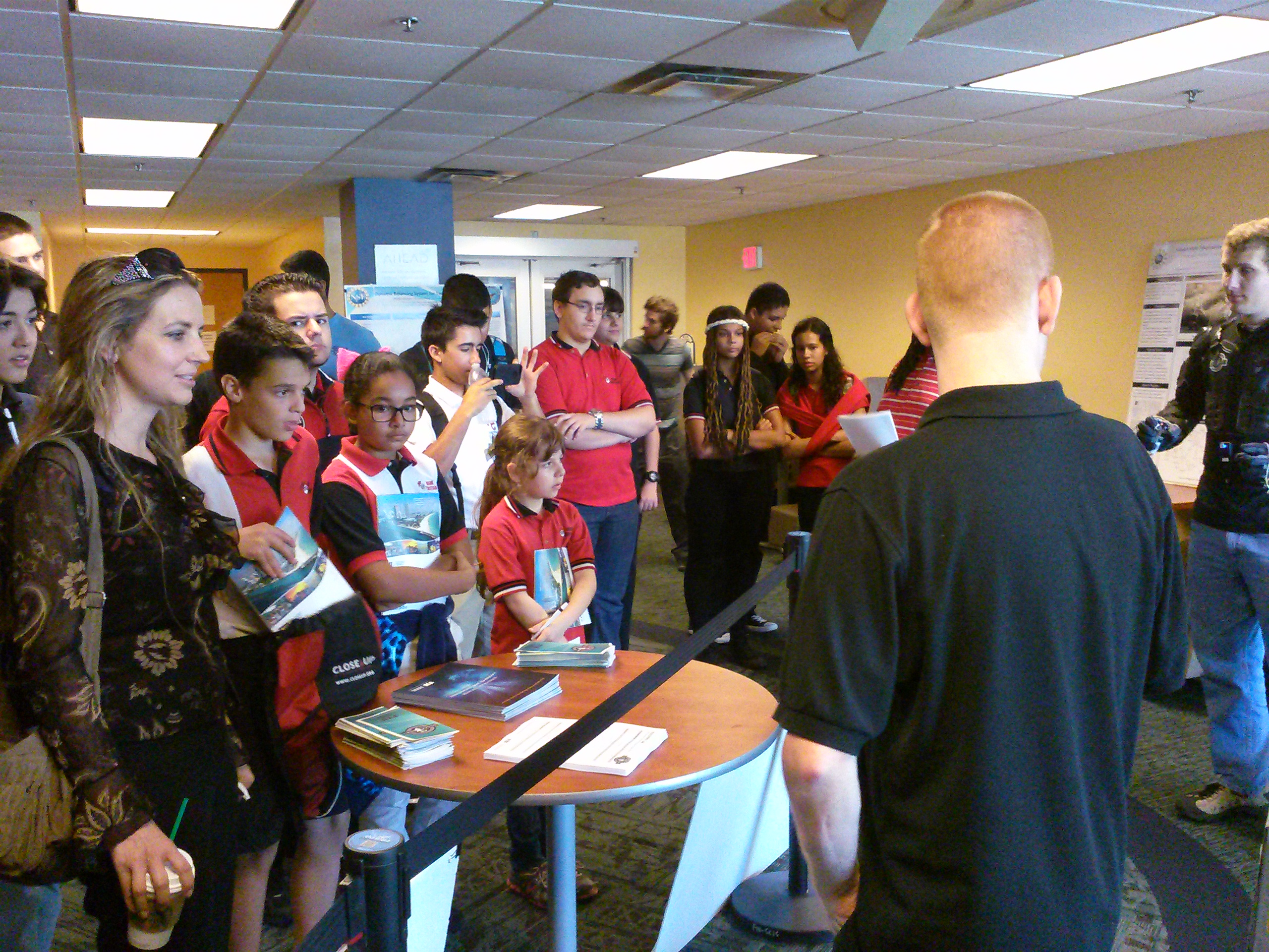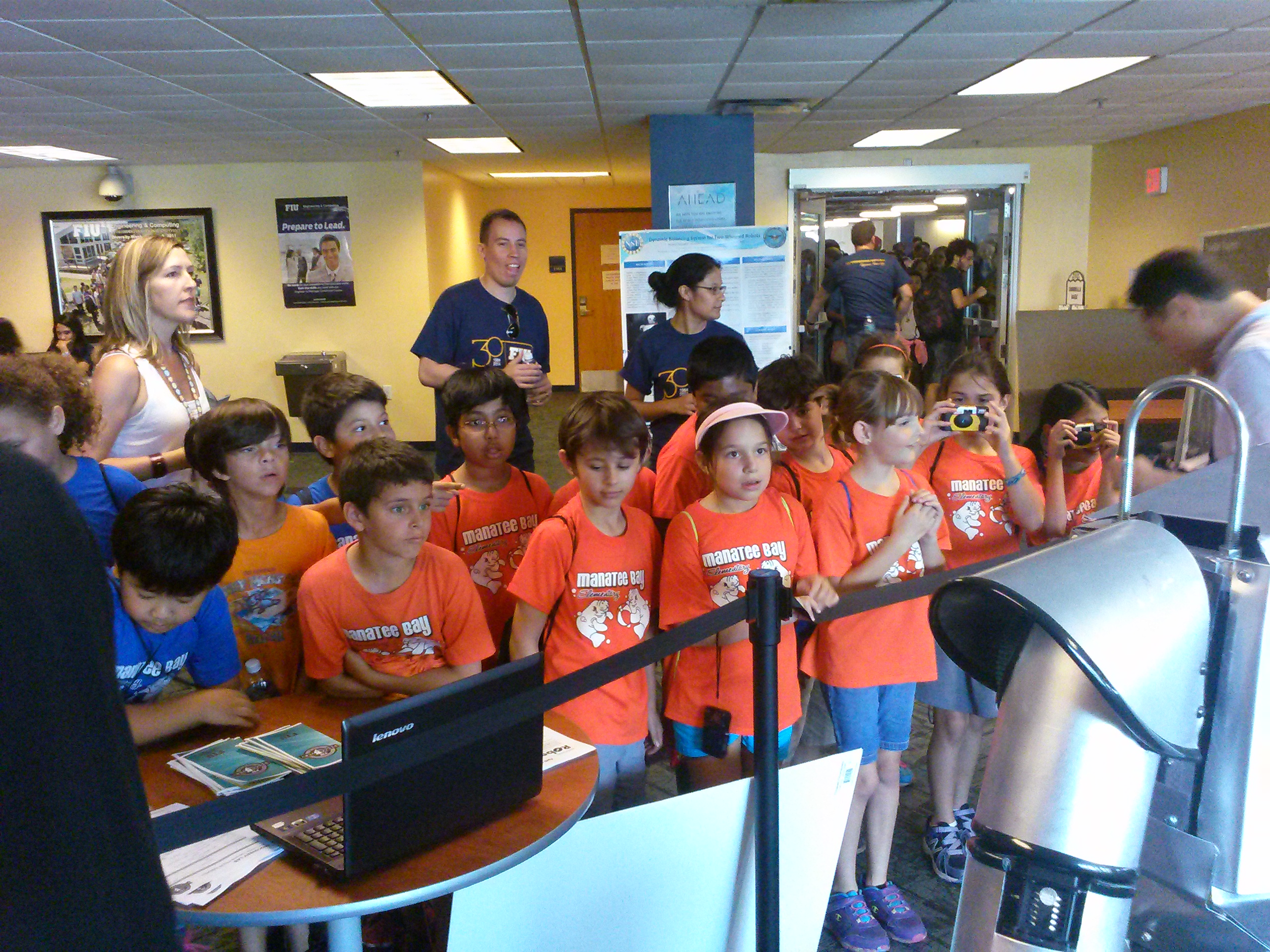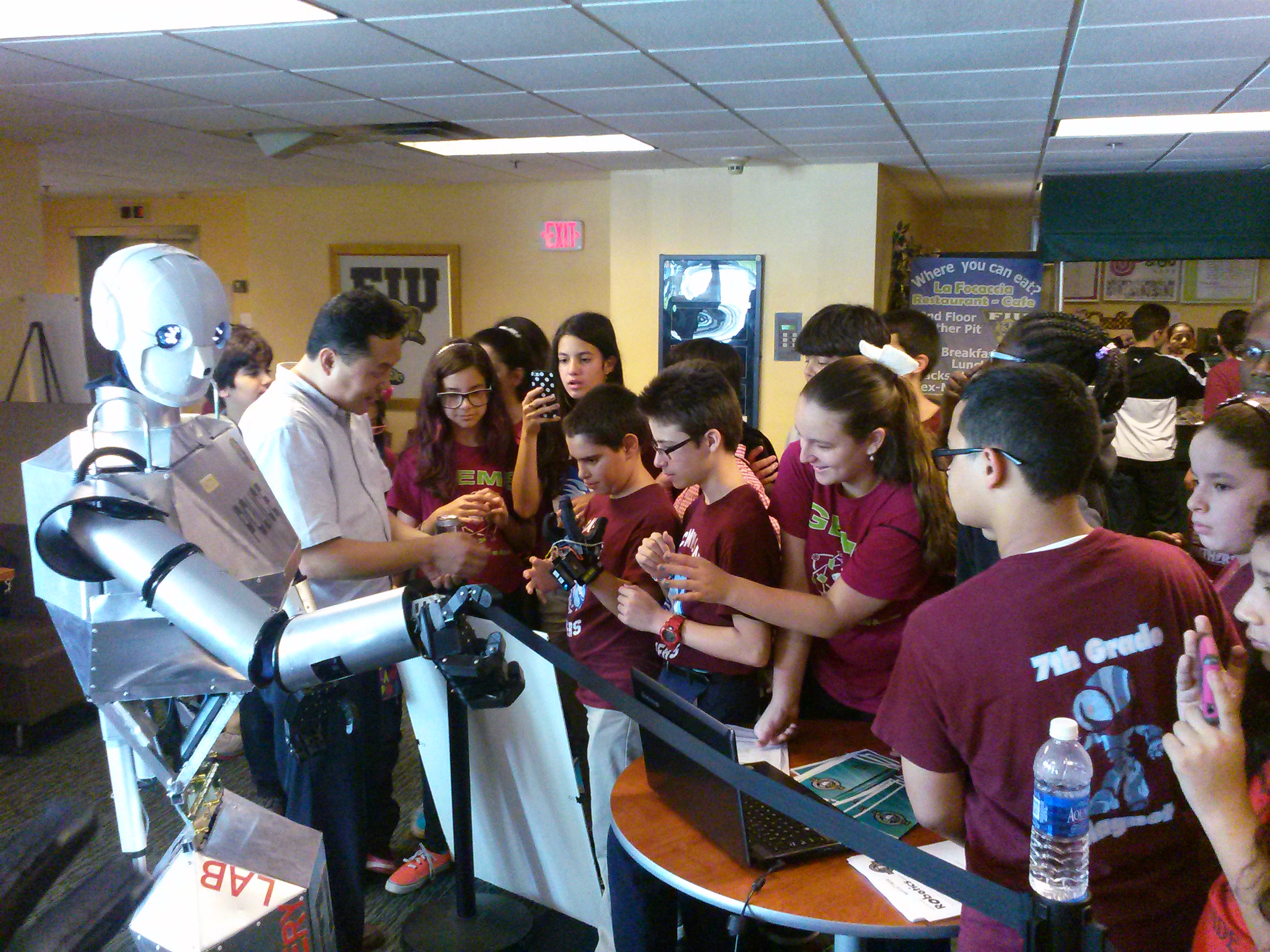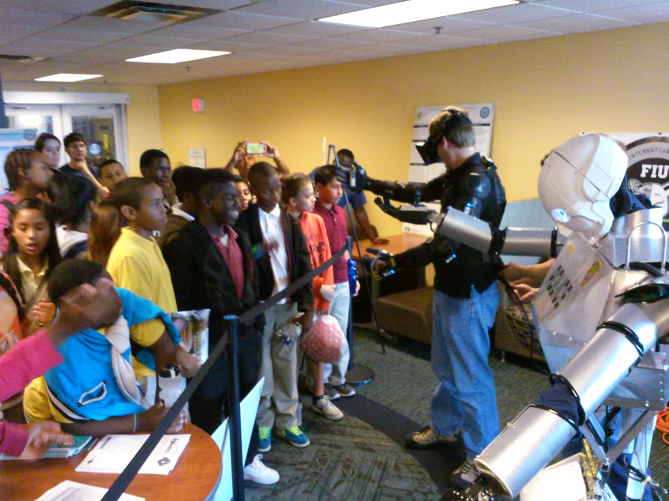 The Discovery Lab had the great opportunity to be present at the 13th Annual FIU Engineering Expo. The expo took place Friday Februay 21 from 9:30 am to 2 pm and hosted a variety of students from all of Miami-Dade and Broward. It was a great opportunity for younger kids to have a taste of the wonders of engineering imagination and so try to peak their interest in the sciences and the student’s professional and interpersonal skills. We were able to present our most challenging project, the Telebot, at this expo. This was a great opportunity to interact with team members and for us to interact with the youth of the community. We hope to continue on with this events and present our projects next year as well.