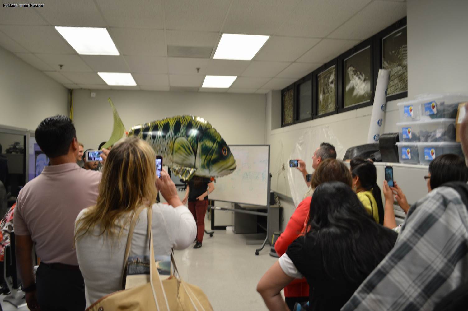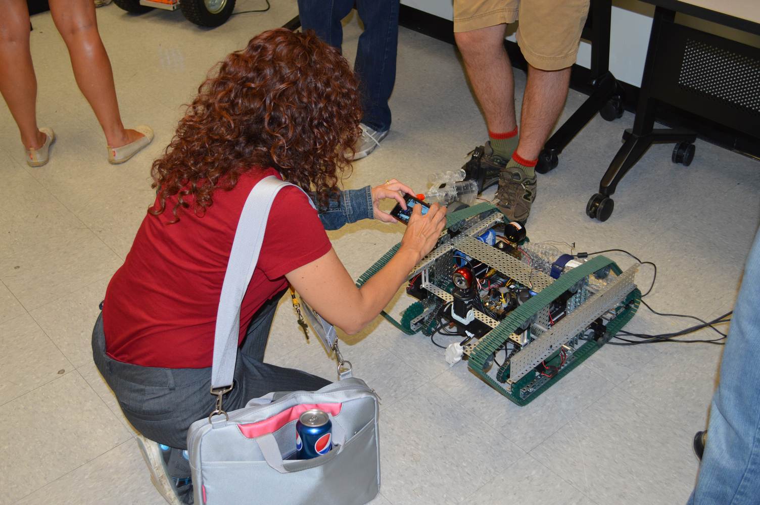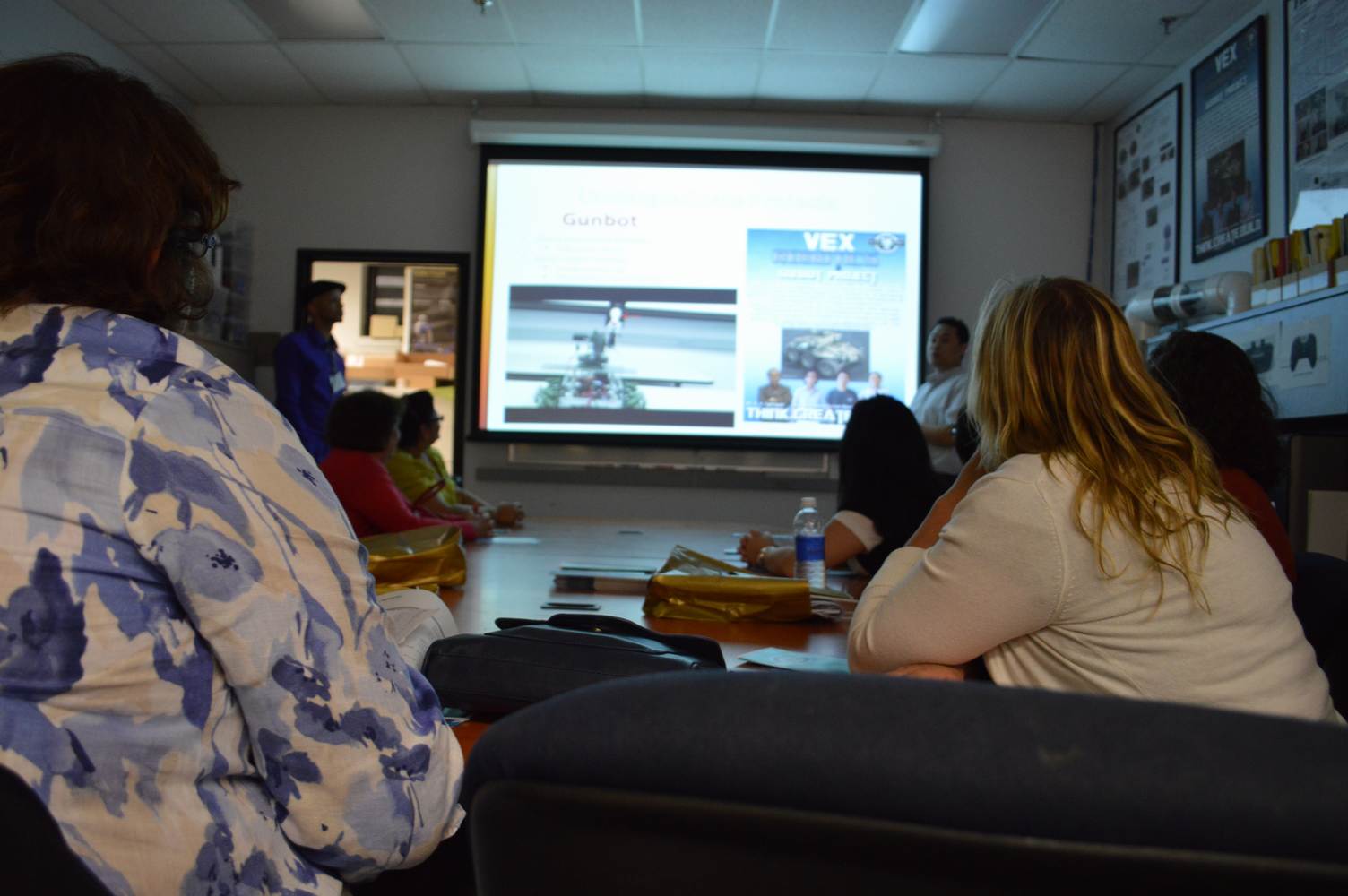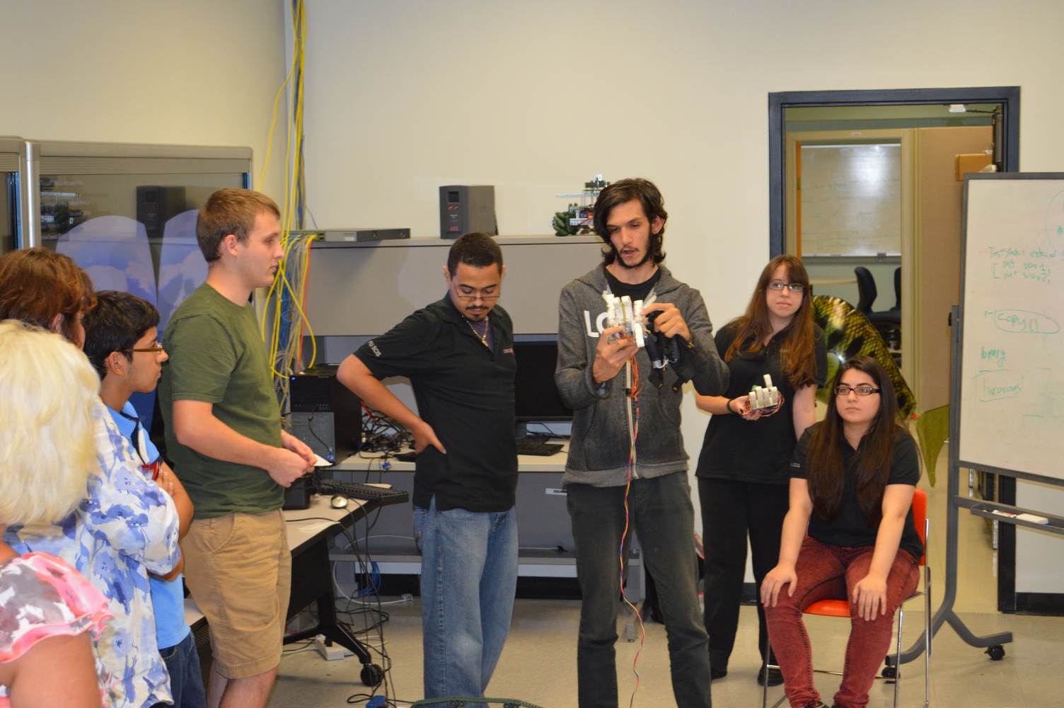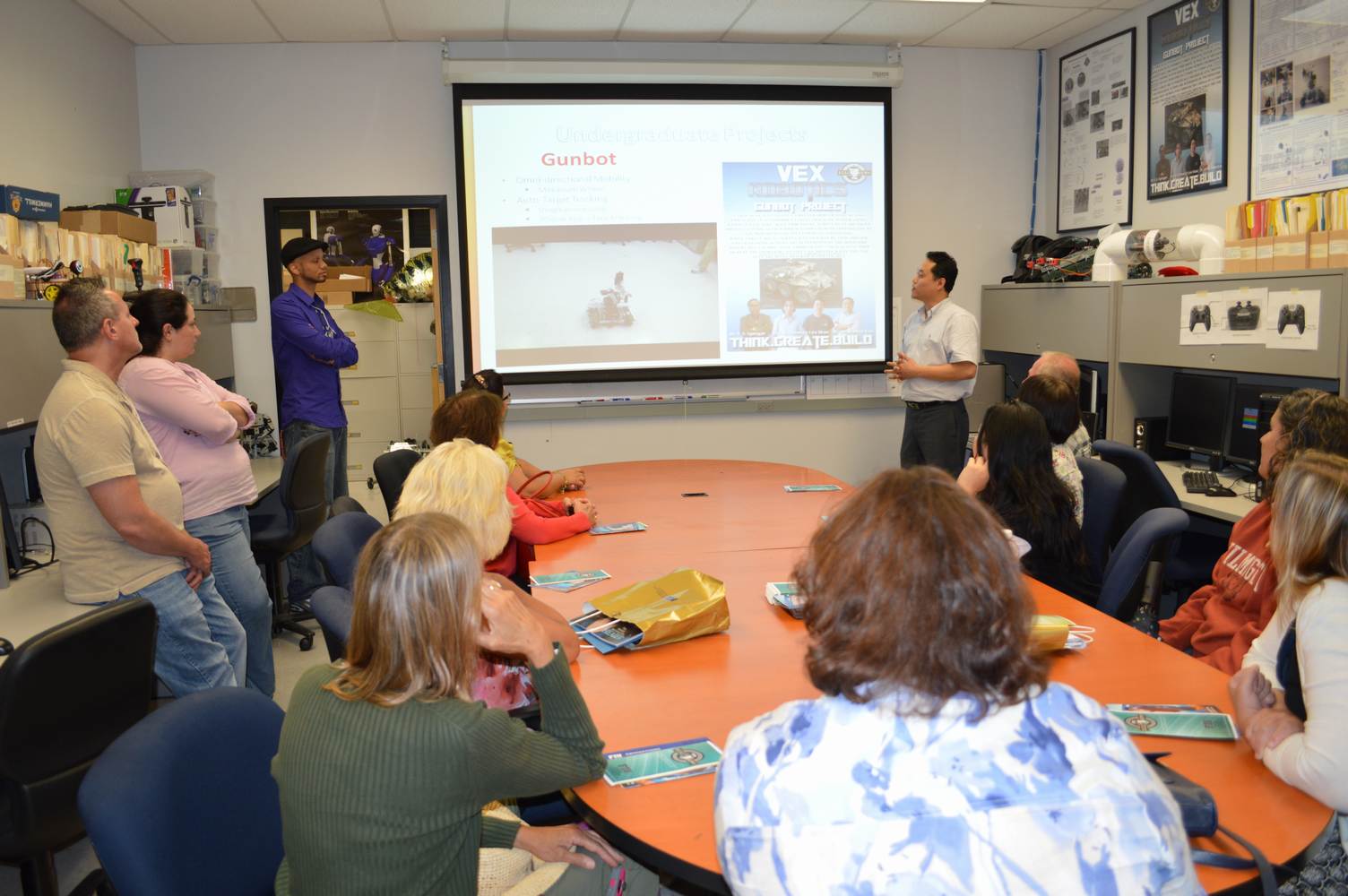 As part of the Tapestry Workshop hosted at FIU, the attendees received a tour of the Discovery Lab. The high school teachers were able to see a quick demonstration of some of the prototypes here as well as a full explanation of most of the projects. The participants recorded video of the machines and some even took pictures with the Telebot prototype. The atendees were most impressed with the air Aquarium project and the Telebot for their size and capabilities. Although it was a quick presentation, the participants were able to learn much about the Discovery Lab’s work here at FIU.